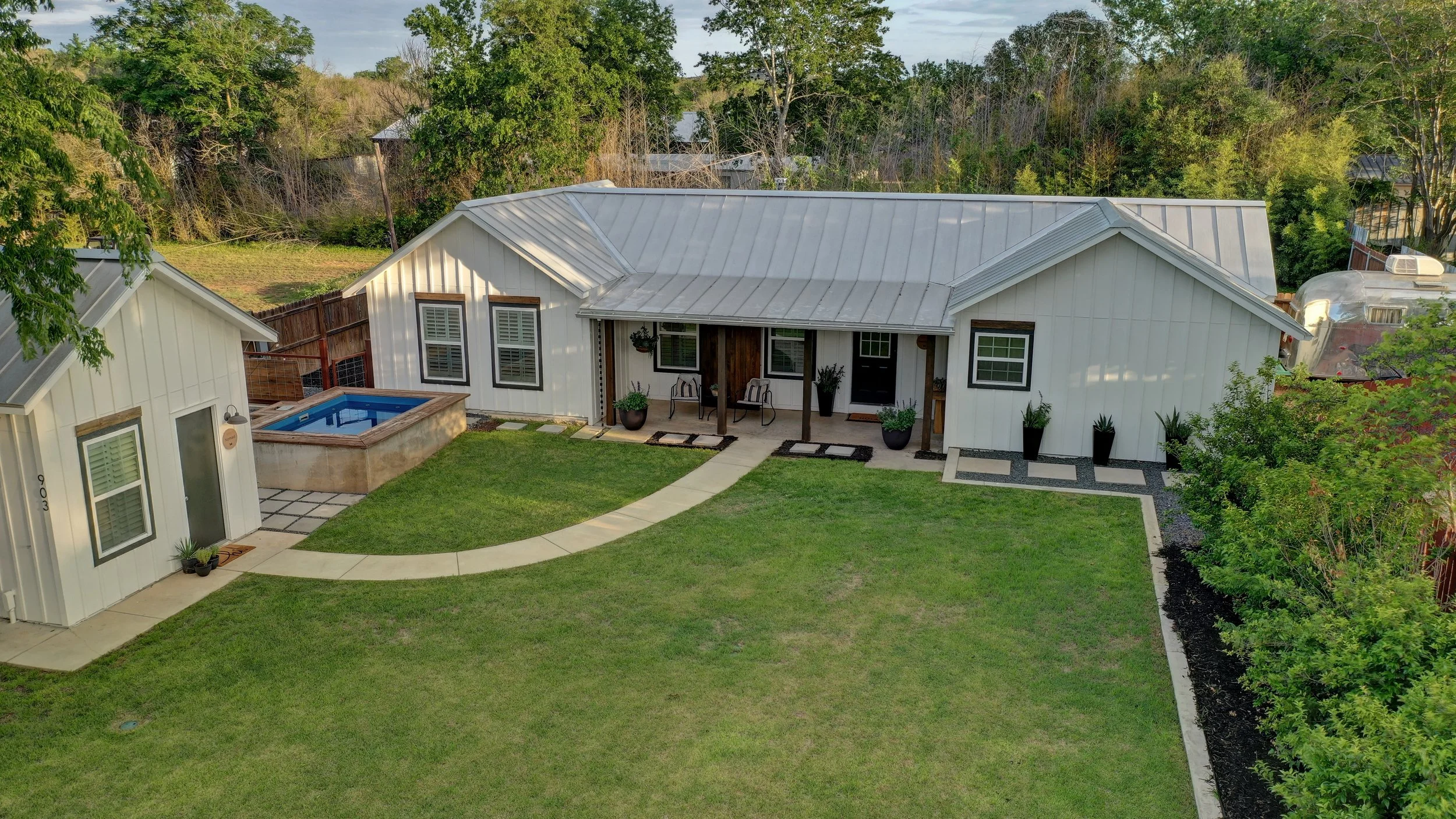 Perfect for Small Group Getaways. Whether you're planning a weekend with friends, a creative retreat, or a quiet reset, Wanderers Retreat House offers the flexibility to gather and unwind. Shared dipping pool and hot tub spaces create opportunities to connect, while individual units provide privacy and comfort at the end of the day. The result is a stay that blends the feel of a boutique guest house with the relaxed spirit of the Texas Hill Country.